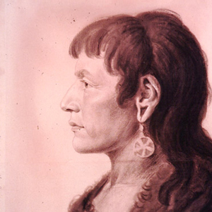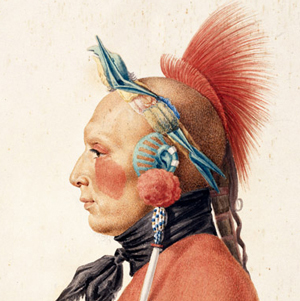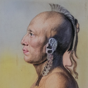 In 1798 Saint-Mémin moved to Philadelphia, where he spent the next four years, making some 270 portraits for a well-to-do clientele. An advertisement announced that “the original portrait, [copper] plate and twelve impressions” cost $25 for gentlemen, $35 for ladies; “the portrait without engraving, may be had for 8 dollars.” He enlarged his customer base beginning in 1803 by spending periods of several months successively in other Eastern cities such as Baltimore, Richmond, Charleston, and especially Washington, where Thomas Jefferson, Meriwether Lewis, and William Clark, were among his sitters, as well as a number of the Plains Indians who visited the President there between 1804 and 1807, including the Mandan chief Sheheke (Big White) and Yellow Corn.