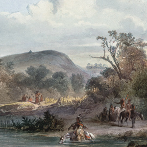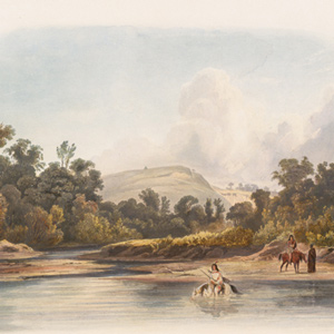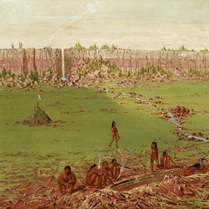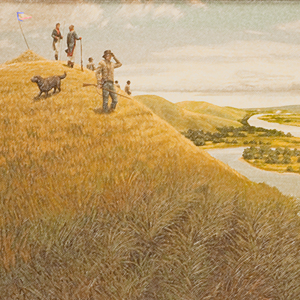 The captains place a flag at the grave of Blackbird, an Omaha chief and prolific trader. They then continue up the Missouri River passing a creek where many Omaha people died from smallpox.