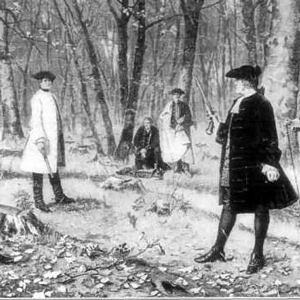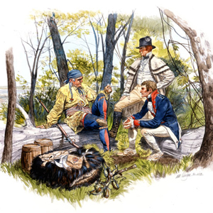 Moving down the Missouri, they meet a group of traders who tell them that Jefferson is again president and that Alexander Hamilton died in a duel with Aaron Burr. They camp above present Sioux City, Iowa.