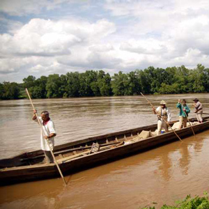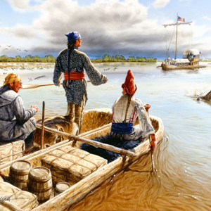 At Camp River Dubois, a cannon is heard from up the Missouri River. Soon after, a salute is fired to greet Pierre Chouteau and 22 Osage People. The captains place Sgt. Ordway in charge and travel with the delegation to St. Louis.