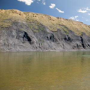 Clark takes the boats up the Missouri past black bluffs and rattlesnakes nearly reaching present Fort Benton. Sacagawea remains ill.