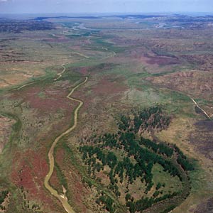 The lost hunters return, and they all continue up the Missouri. As they approach the present Nebraska-Kansas border, they see a large prairie of Canada wild rye and Indian potato growing on an island.
