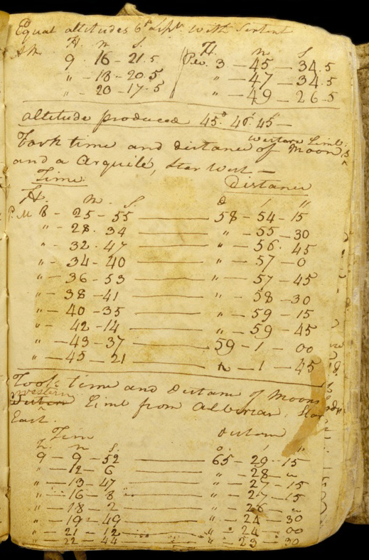 The table of celestial observations shown in the figure were recorded by William Clark at the Clearwater River canoe camp, 6 October 1805. For more, see Clearwater Canoe Camp Observations by Robert N. Bergantino. See also Deciphering the Celestial Data by Robert N. Bergantino and Celestial Reckoning by John Logan Allen.
