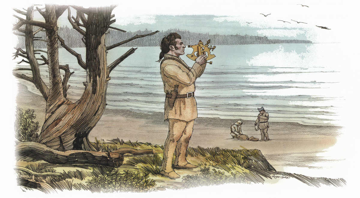 A break in the weather at Station Camp near present Chinook, Washington enables the main party to dry gear and for Clark to take celestial observations. Hunters find some success, and Sgt. Gass reflects on reaching the end of their voyage. Lewis is looking for ships at Cape Disappointment and adds Oregon boxleaf to his plant collection.