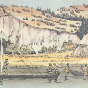 At Kamiah in present Idaho, they establish a “Long Camp” among the Nez Perce to wait for mountain snows to melt. Sgt. Ordway takes a side trip to the Salmon and Snake rivers where some Nez Perce fishers are catching salmon.