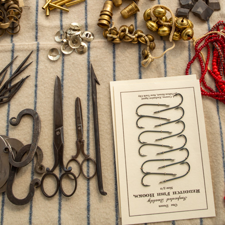 At Camp River Dubois in Illinois, Clark and fur trader John Hay organize the many goods that will be used as diplomatic gifts for the Native Nations the expedition will soon meet. Popular gifts include scissors, fishhooks, iron strikers, and metallic buttons.